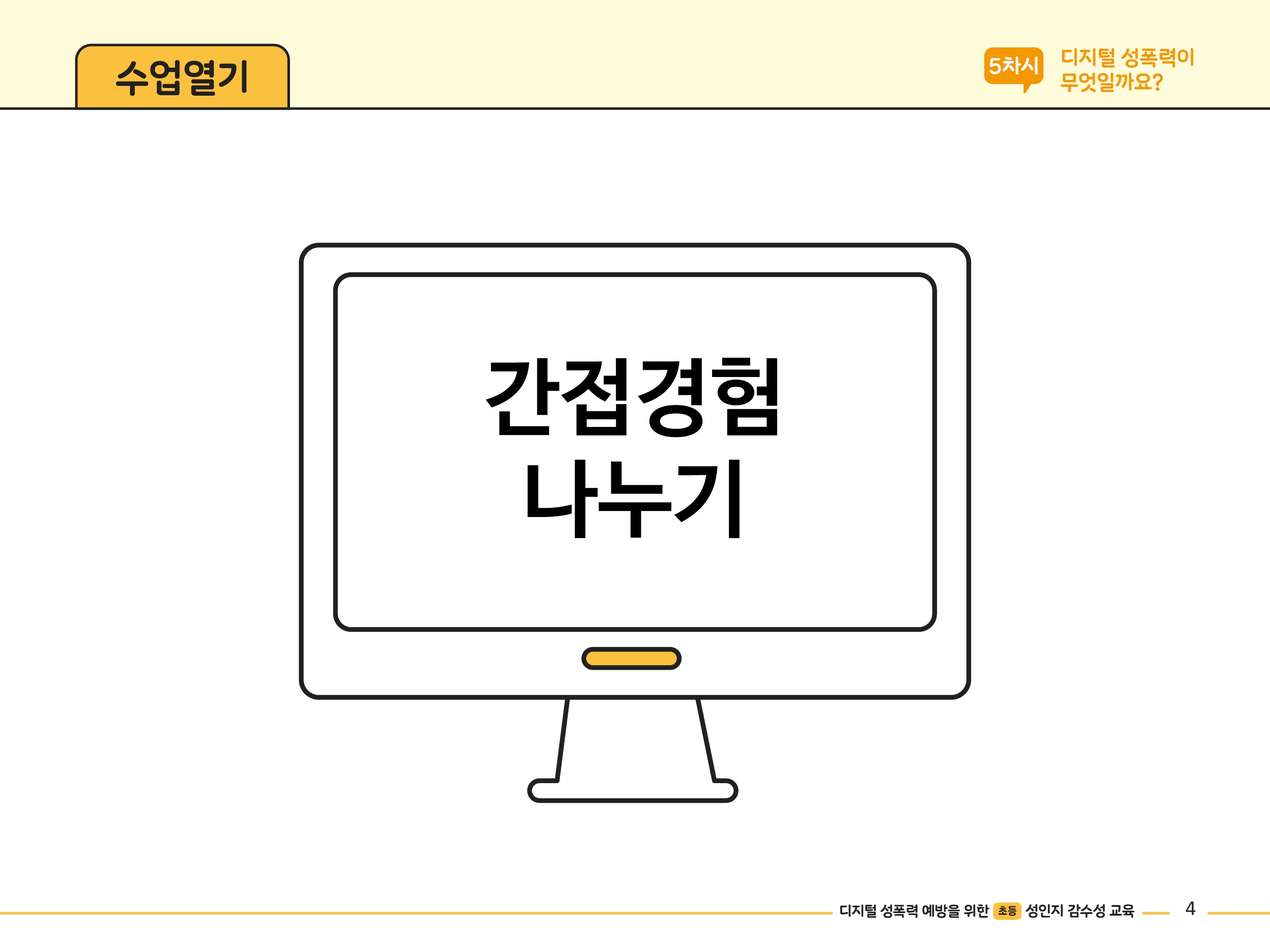 - 디지털 성폭력과 관련한 사전지식을 알아보기 위해 함께 이야기 나누도록 합니다.